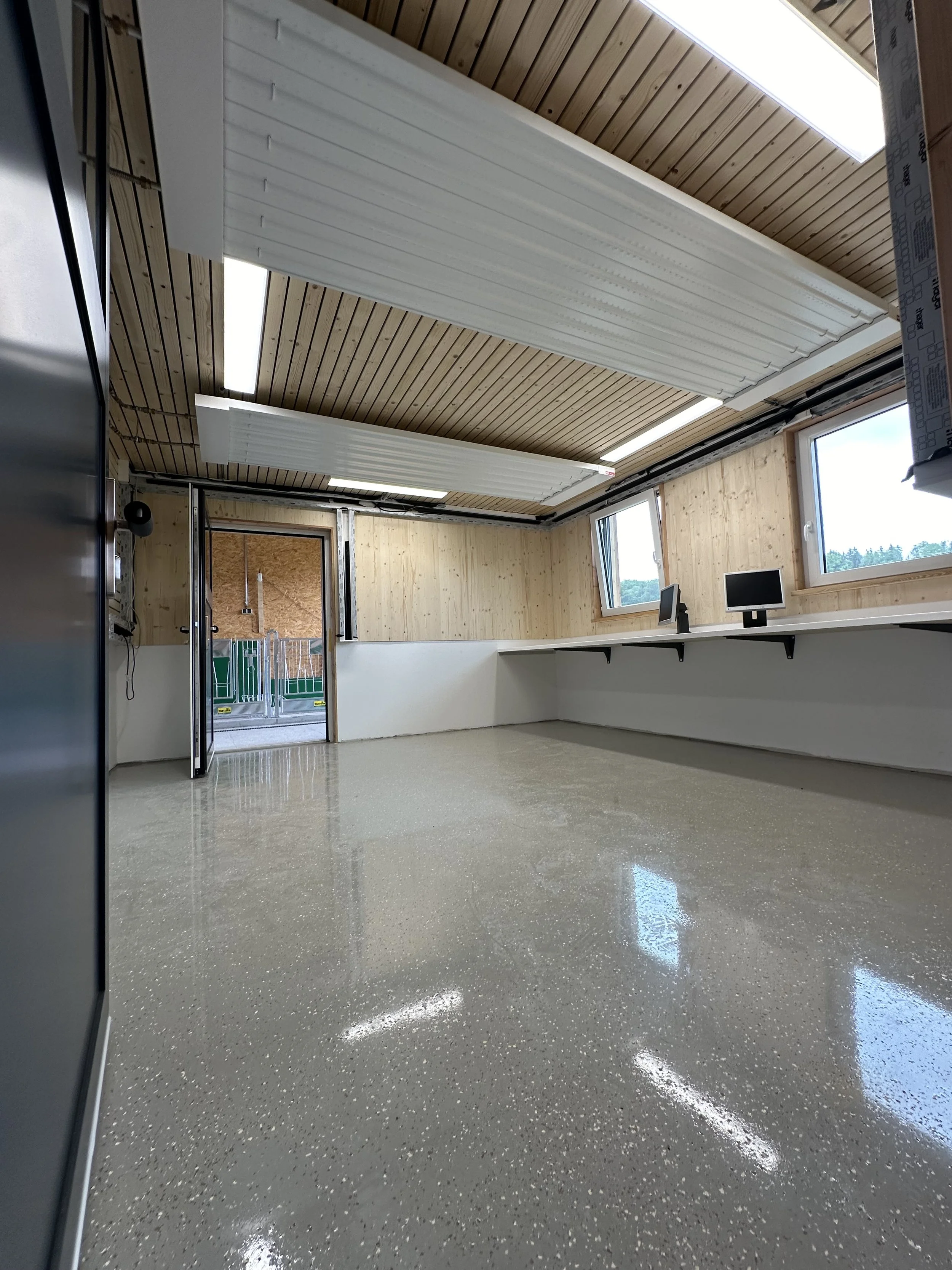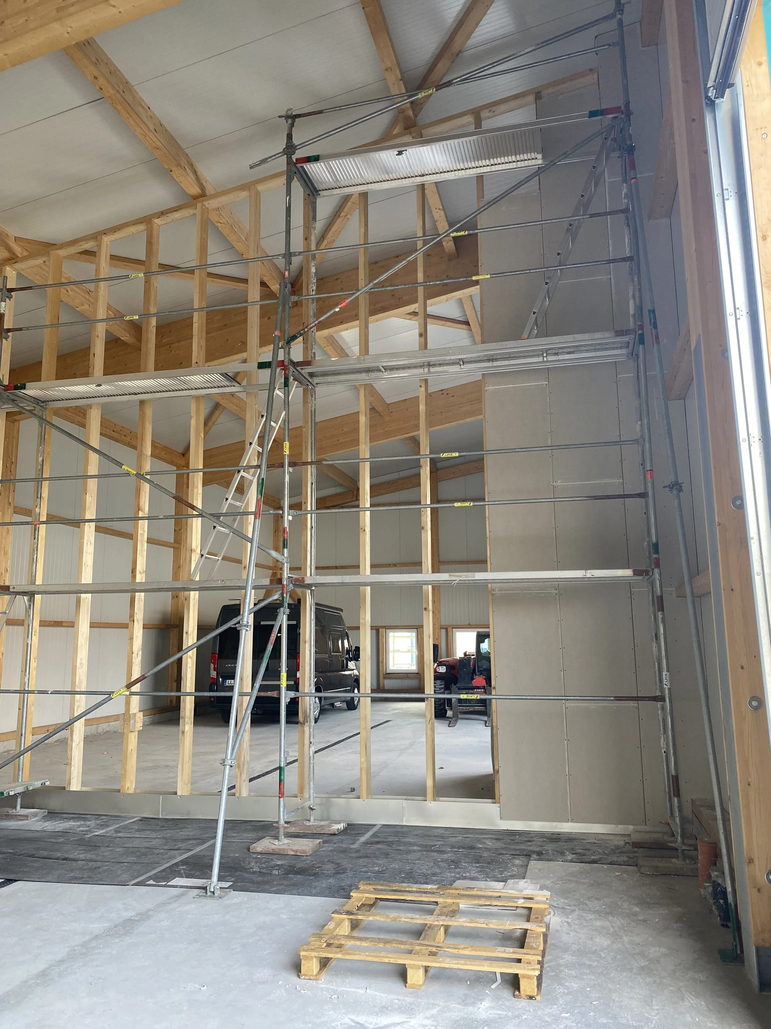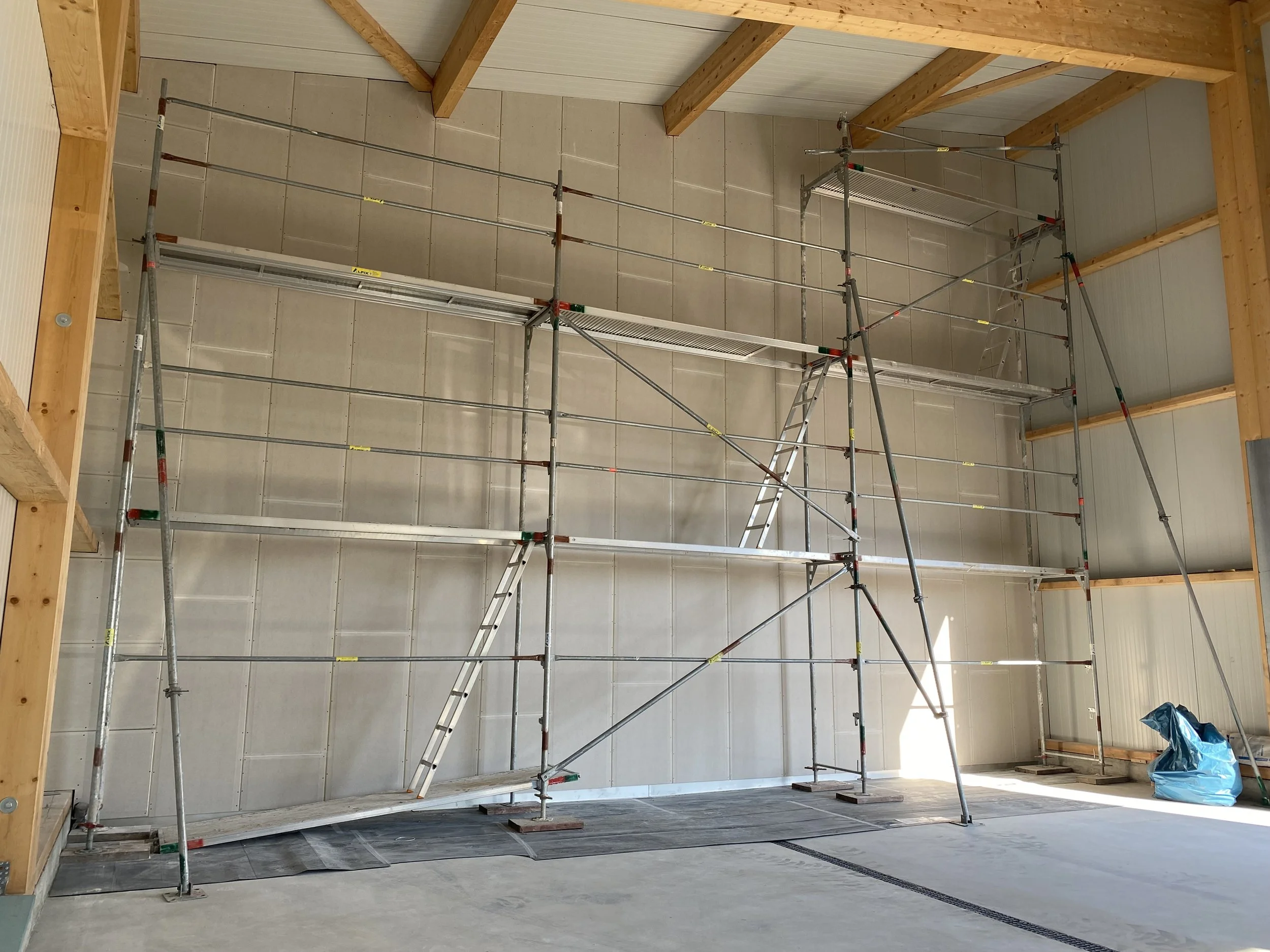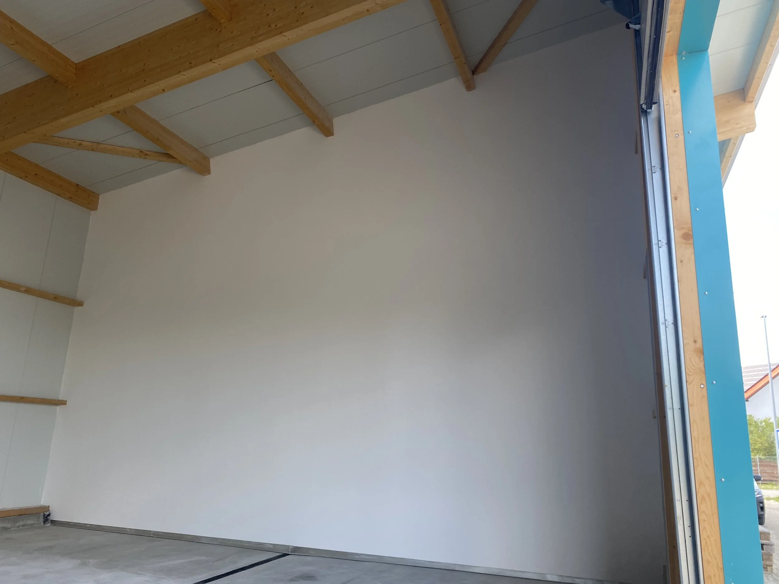 Abtrennung einer Gewerbehalle in zwei separate Bereiche mit einer Brandschutzwand.