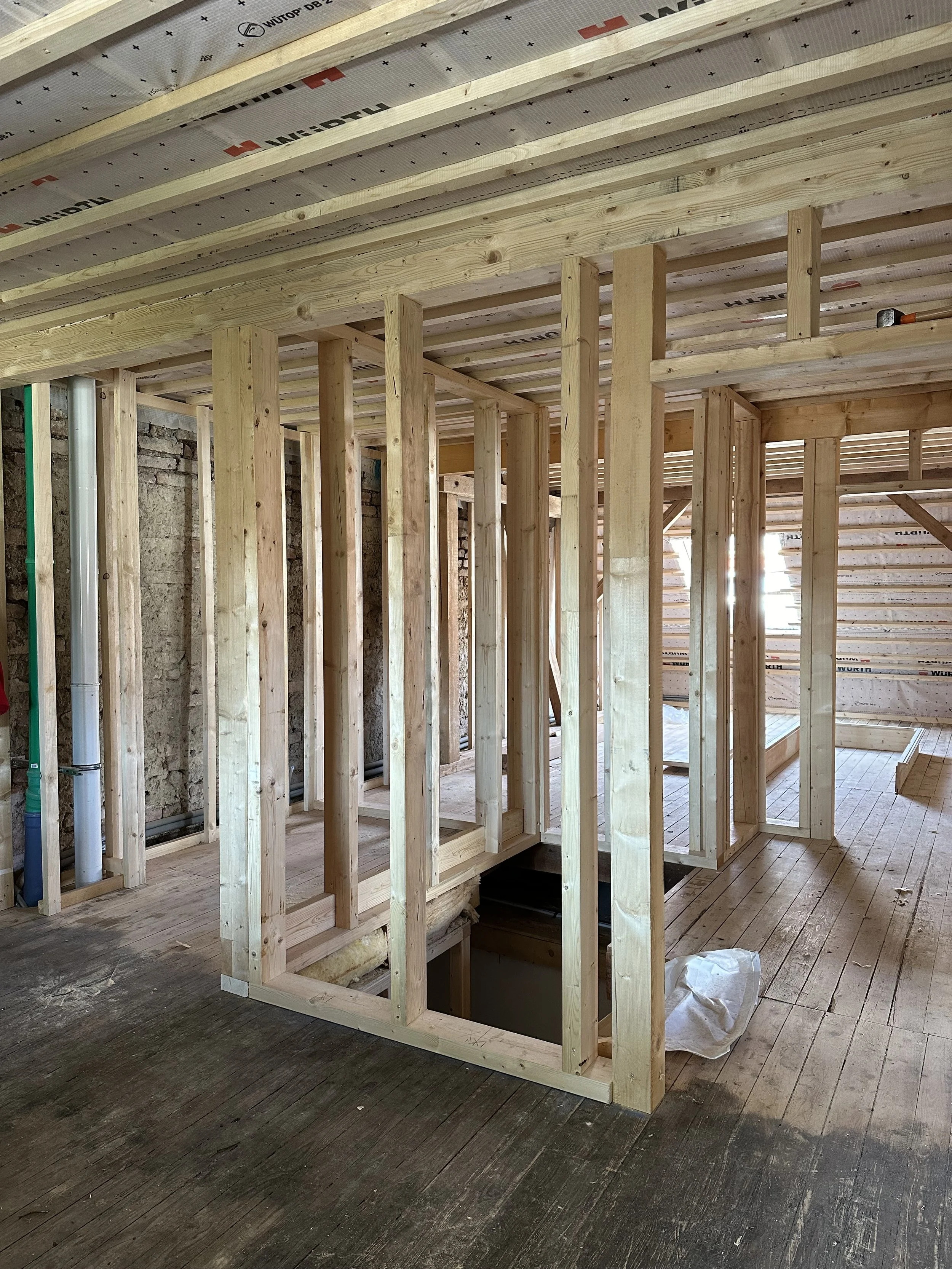 Für die Erschaffung zusätzlichen Wohnraumes haben wir den alten Heustock genutzt. Durch einen Deckendurchbruch mit neuer Treppe haben wir die beiden Gebäudeteile miteinander verbunden.