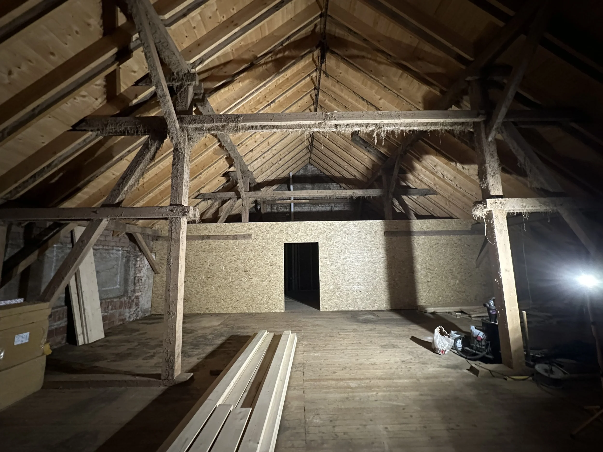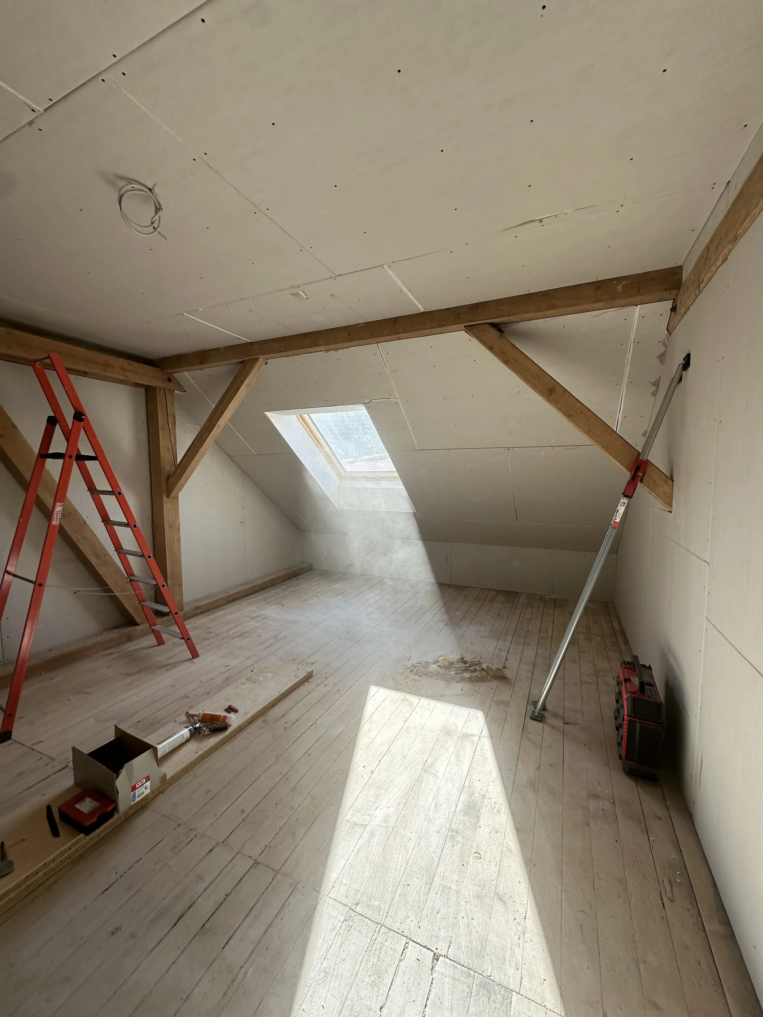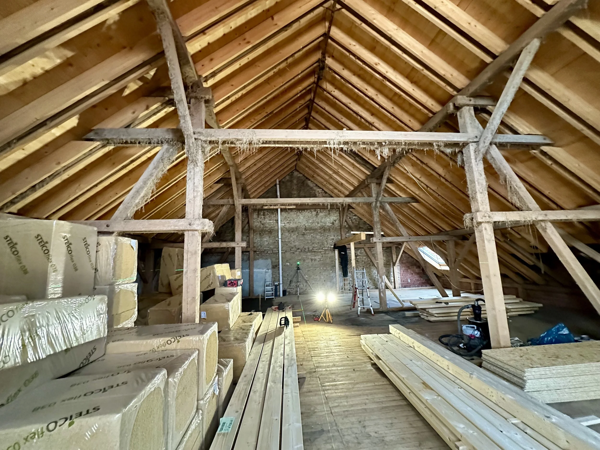 Dachgeschossausbau mit ökologischer Wärmedämmung und Gipskartonverkleidung.
